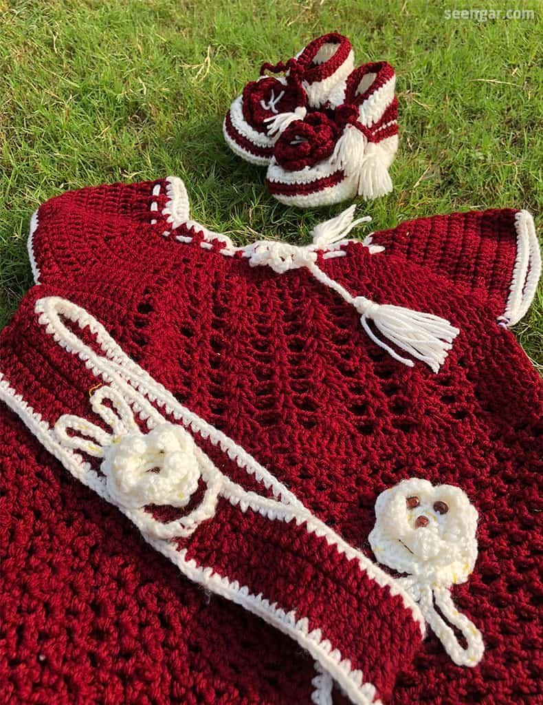 We do care about baby’s winter products that’s why introducing purely hand made Baby Crochet Frock with Shoes & Pant. Please read the details carefully before ordering and mention it in checkout notes or whatsapp on 00971558201966