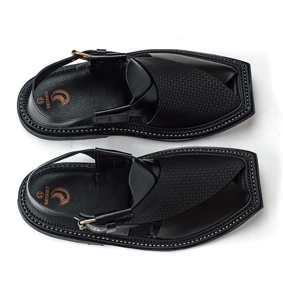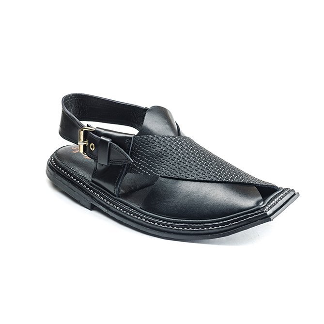 The half textured Black Cut T shape Charsadda Chappal is design for modern men. This exclusive footwear is stylish and comfortable.