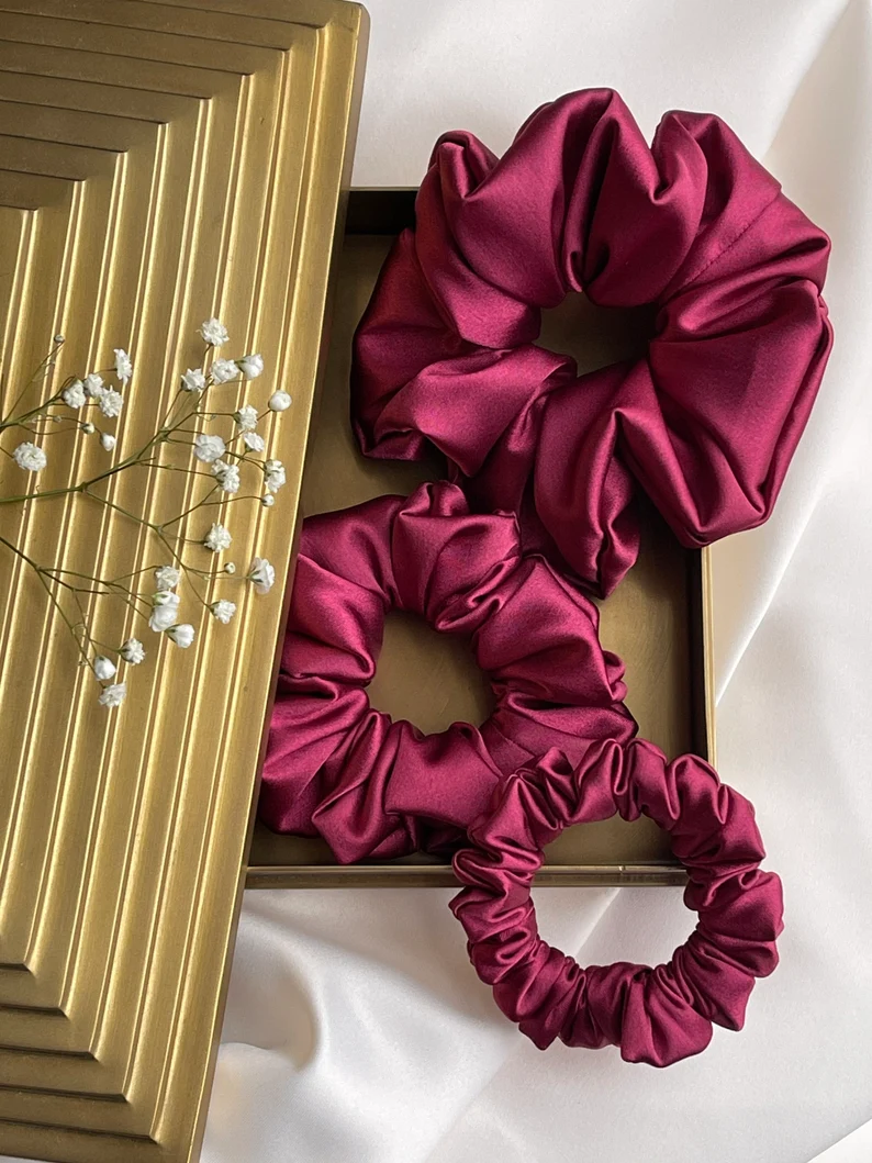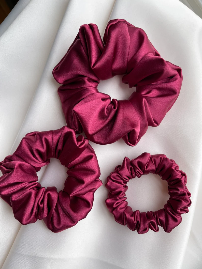 Pack of 3 Red Silk Scrunchies